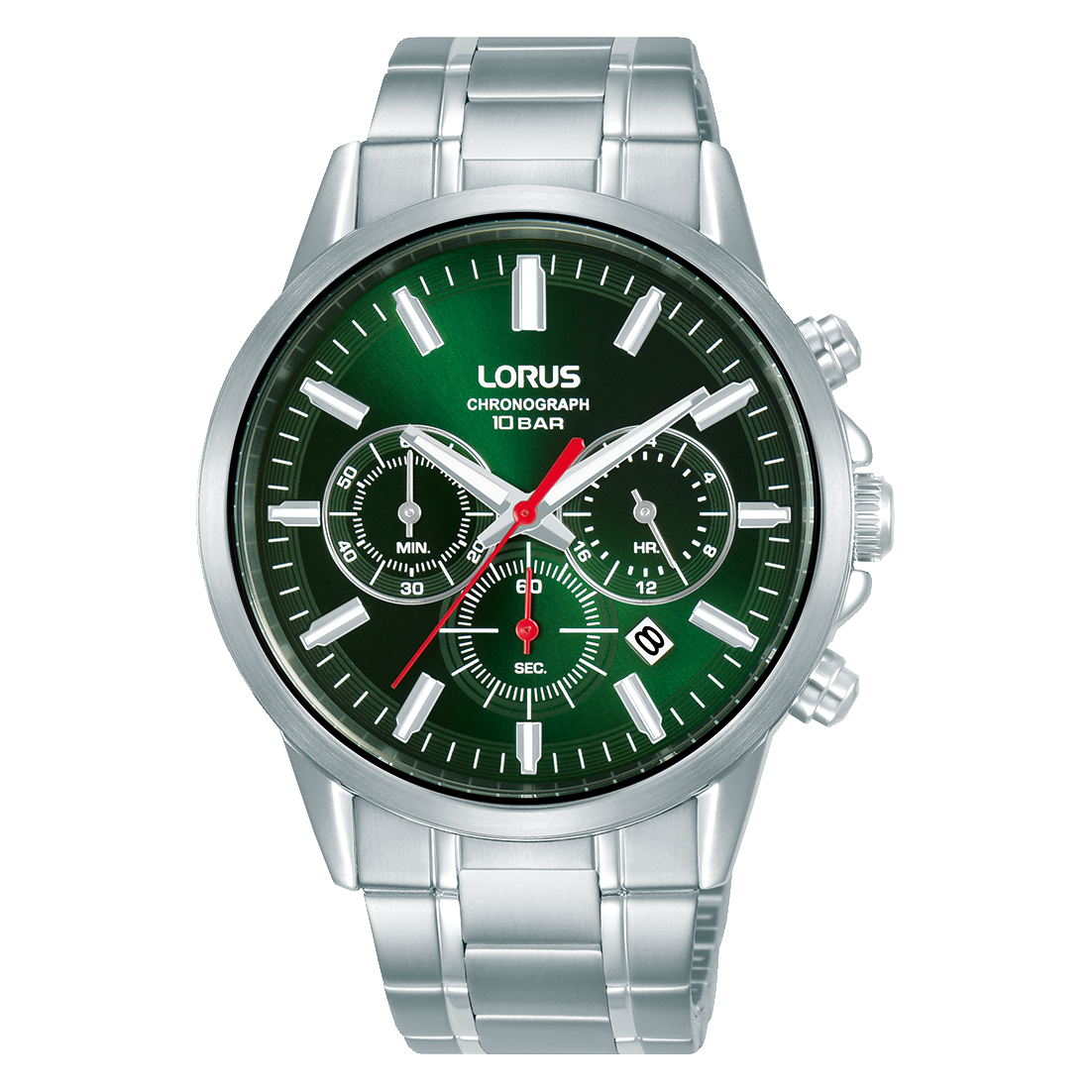 Muški sat Lorus RT375KX-9 kombinira klasičnu čeličnu izvedbu s modernim detaljem u vidu zelenog brojčanika. Kućište promjera 42 mm izrađeno je od nehrđajućeg čelika u srebrnoj boji, a čelična narukvica u istom tonu zaokružuje cjelinu i daje mu čvrst, skladan izgled.