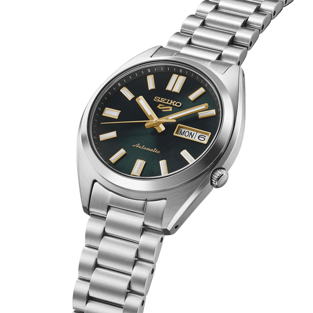 Muški ručni sat SRPL57K1 brenda SEIKO izrađen je s kućištem od nehrđajućeg čelika zelene boje i zelenim brojčanikom koji mu daje izražen karakter. Opremljen je automatskim mehanizmom, a promjer kućišta od 37 mm čini ga pogodnim za svakodnevno nošenje. Narukvica od nehrđajućeg čelika u srebrnoj boji zaokružuje cjelokupan izgled sata.